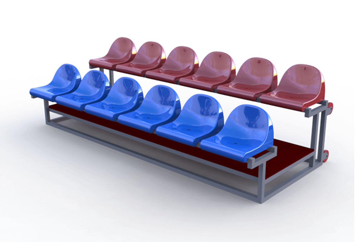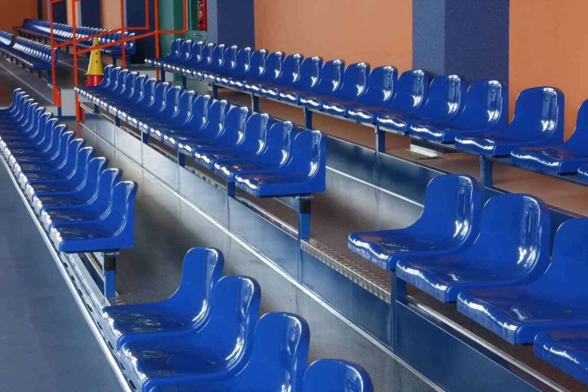 Разборная трибуна – это конструкция из металла, части которой монтируются между собой при помощи болтового соединения. Такие сооружения считаются самыми универсальными и удобными в использовании. Зрительская трибуна такого типа может состоять из неограниченного числа рядов и проходов, быть адаптирована под любое пространство. В виде напольного покрытия лестничного прохода и прохода между рядами применяются такие материалы как: металлический лист либо влагоотталкивающая ламинированная фанера. Металлический каркас может быть окрашен в любой цвет по желанию клиента.