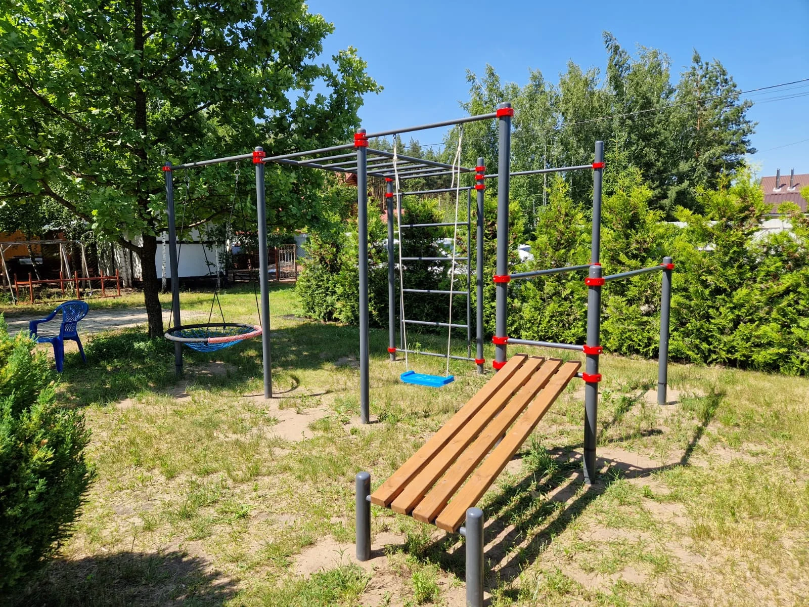 Воркаут комплекс с качелями во дворе - это замечательная идея для поддержания физической формы и развлечения.